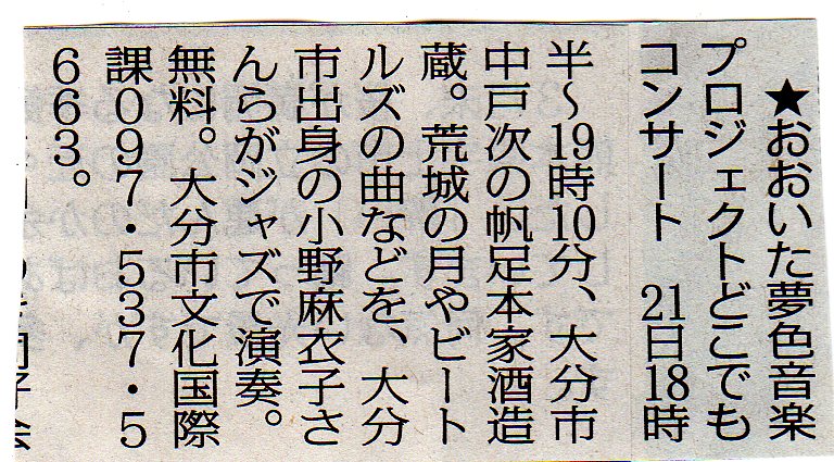 (先日のライブ、おおいた夢色音楽祭のパンフより転載)